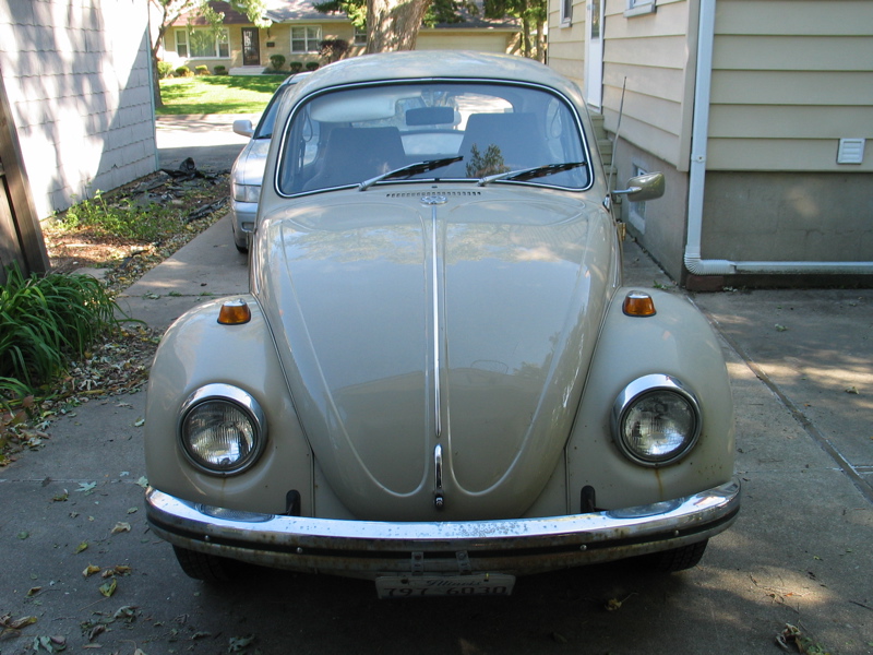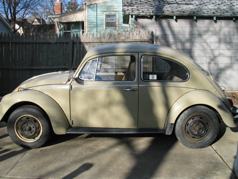 In October of 2006, we dropped the Beetle off at Haraldsen's Garage to get it repainted. A couple of weeks later we picked it up, this time with much less rust and matching paint all around. Next up: the wheels!